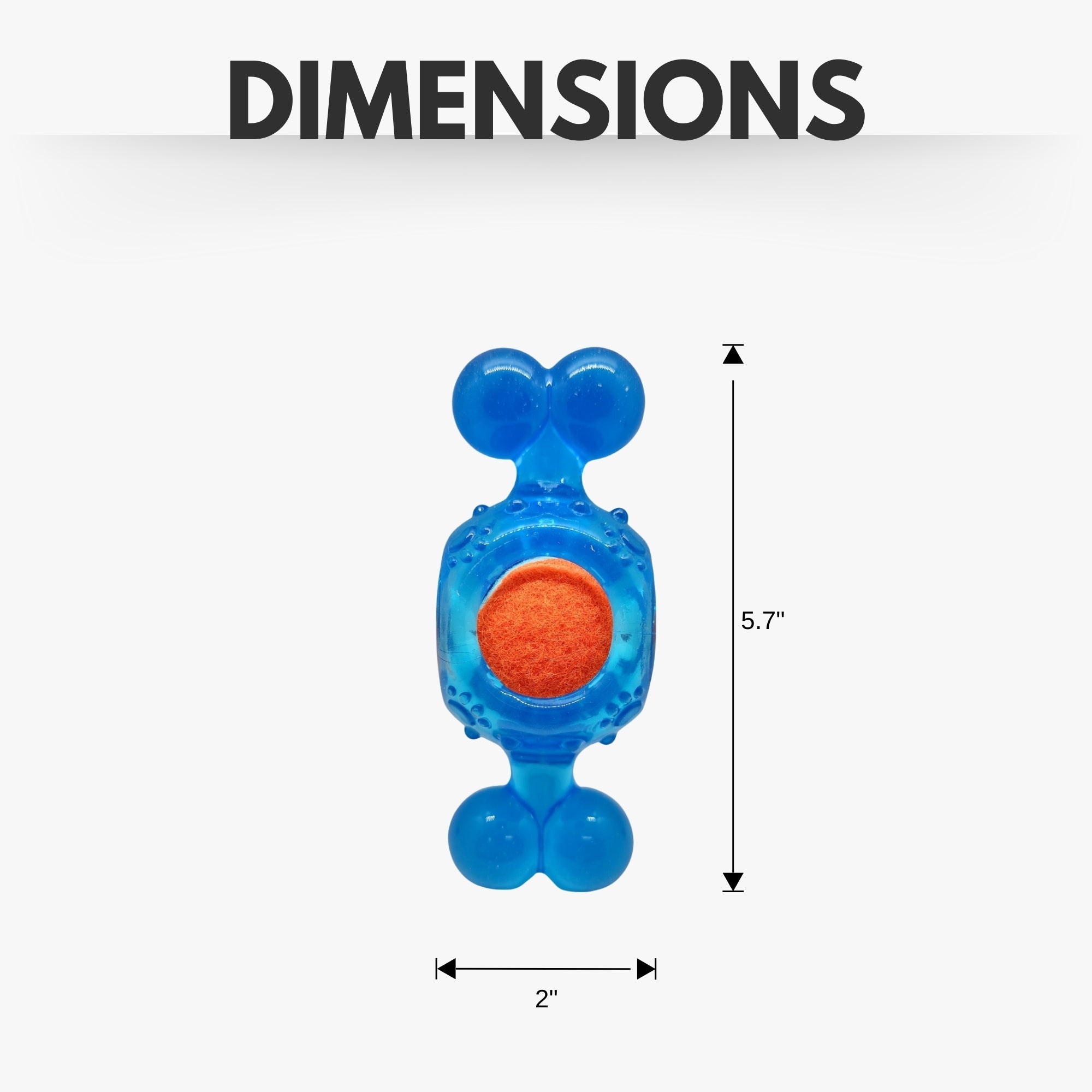 Whether your dog loves chewing, fetching, or both, this versatile toy is sure to provide endless enjoyment. Featuring a built-in squeaky tennis ball, it adds an extra layer of excitement to playtime. The textured surface, with ridges and nubs, helps clean teeth and massage gums, promoting oral health while your dog plays.