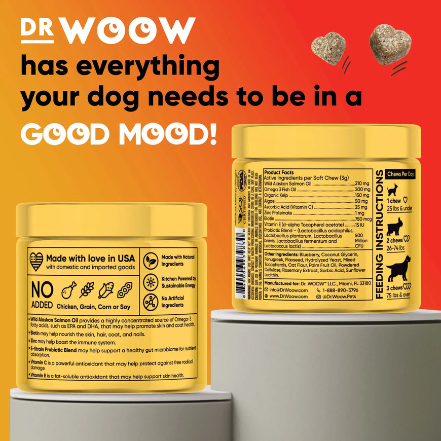 Bring that Kissable Softness back into your dog's skin with Dr Woow's Skin and Coat Soft Chews for Dogs.