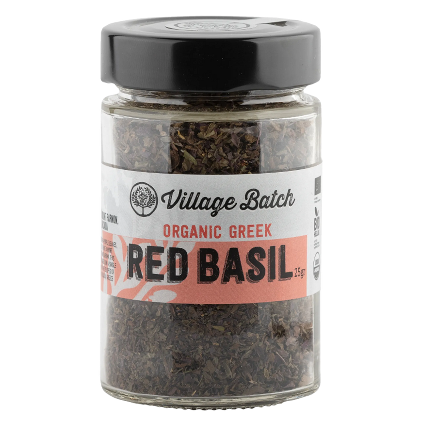 With its unusual reddish-purple leaves, Expect this basil to have a more pronounced flavor and aroma. This variety is grown and dried on a single small-scale farm on the slopes of Mt. Parnon in Arcadia, Greece.
