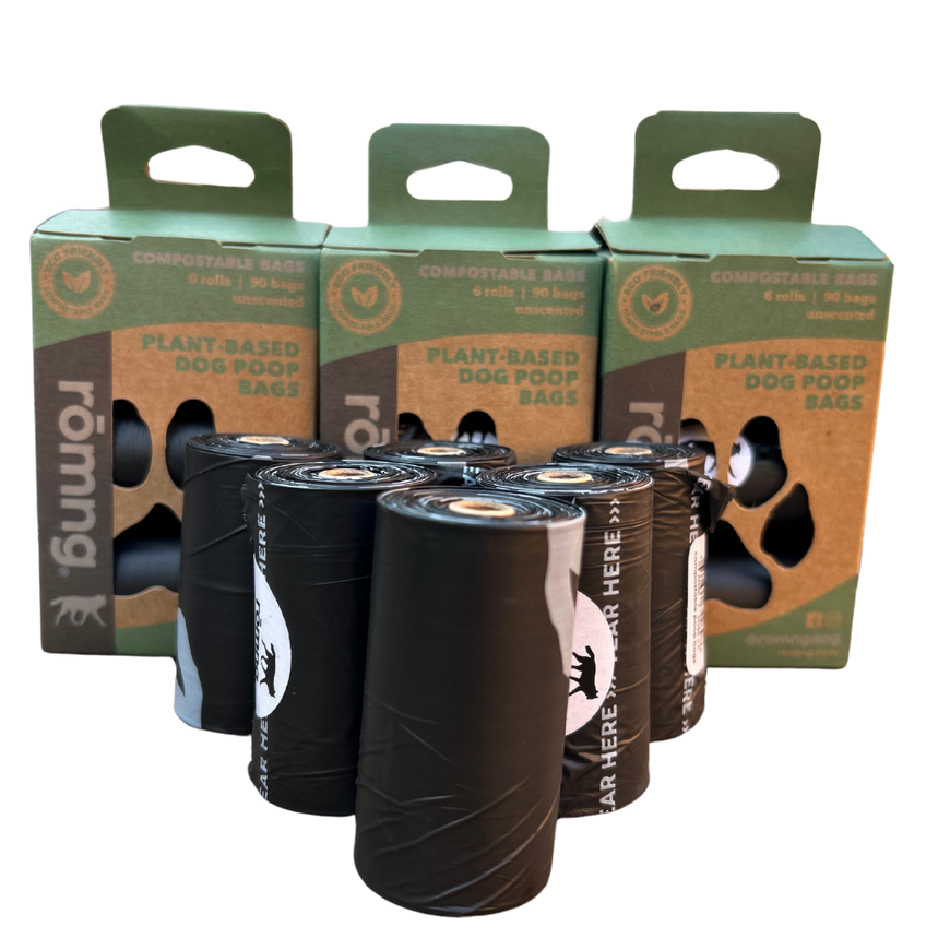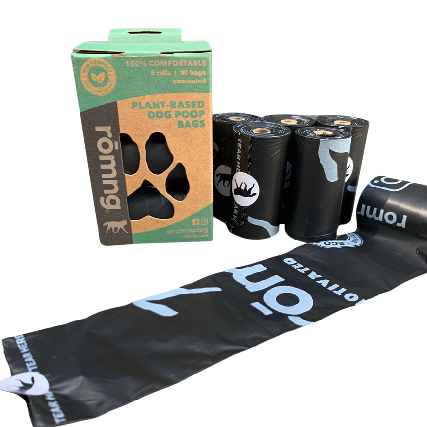Make a conscious choice to reduce plastic waste and embrace eco-friendly alternatives. With rōmng compostable dog poop bags, you can confidently clean up after your pet knowing you're making a difference for our planet.