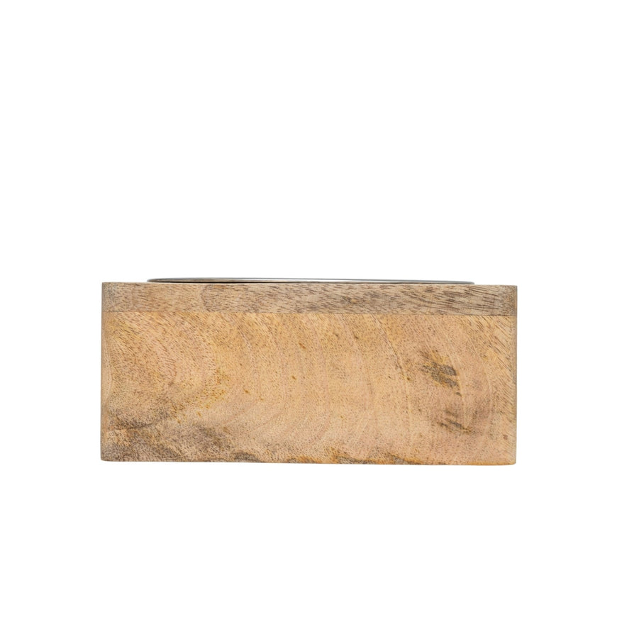 Crafted from premium stainless steel for durability and ease of cleaning. Ideal for both food and water, this bowl is resistant to rust and corrosion, ensuring longevity. The holder is made from beautifully grained mango wood in a unique square shape, adding a touch of aesthetic elegance to your home while keeping the bowl stable during mealtime. The stainless steel bowl is removable for hassle-free cleaning and is dishwasher safe, making maintenance a breeze. The robust mango wood holder which measures 7.2" x 3.2" ensures a stable, slip-resistant base, reducing spills and keeping the feeding area tidy.