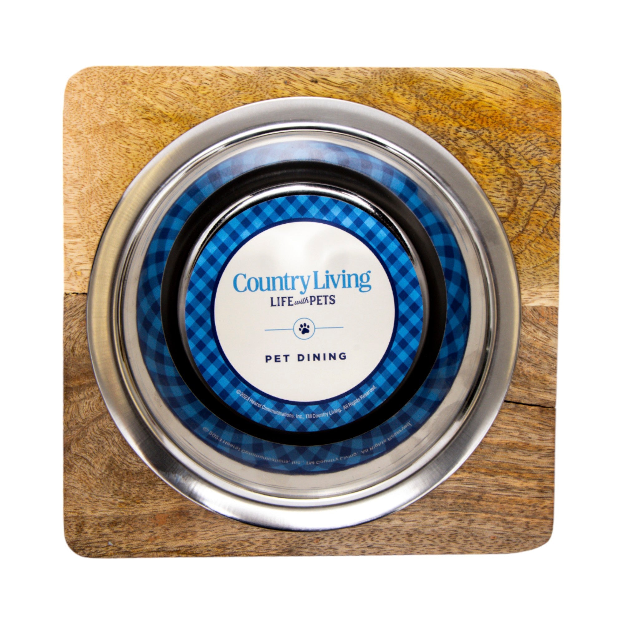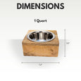 Country Living Elegant Stainless Steel Dog Bowl with Square Mango Wood Holder – 1 Quart