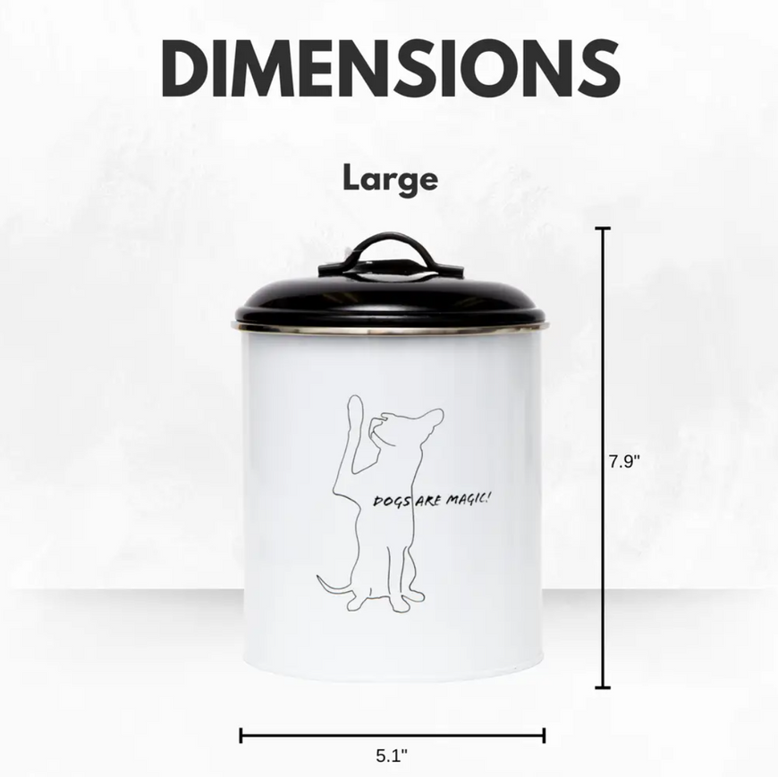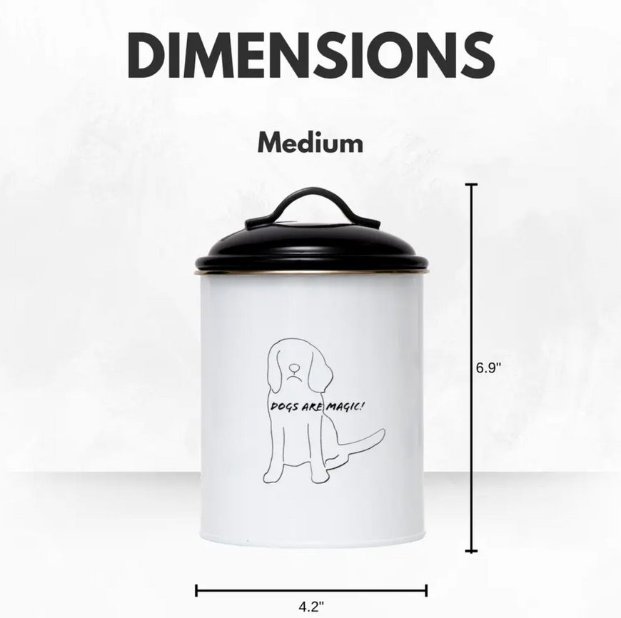 • Elegant Design: Each container features a bright, glossy powder-coated exterior with stylish "Dogs are Magic!" script and adorable dog silhouettes.