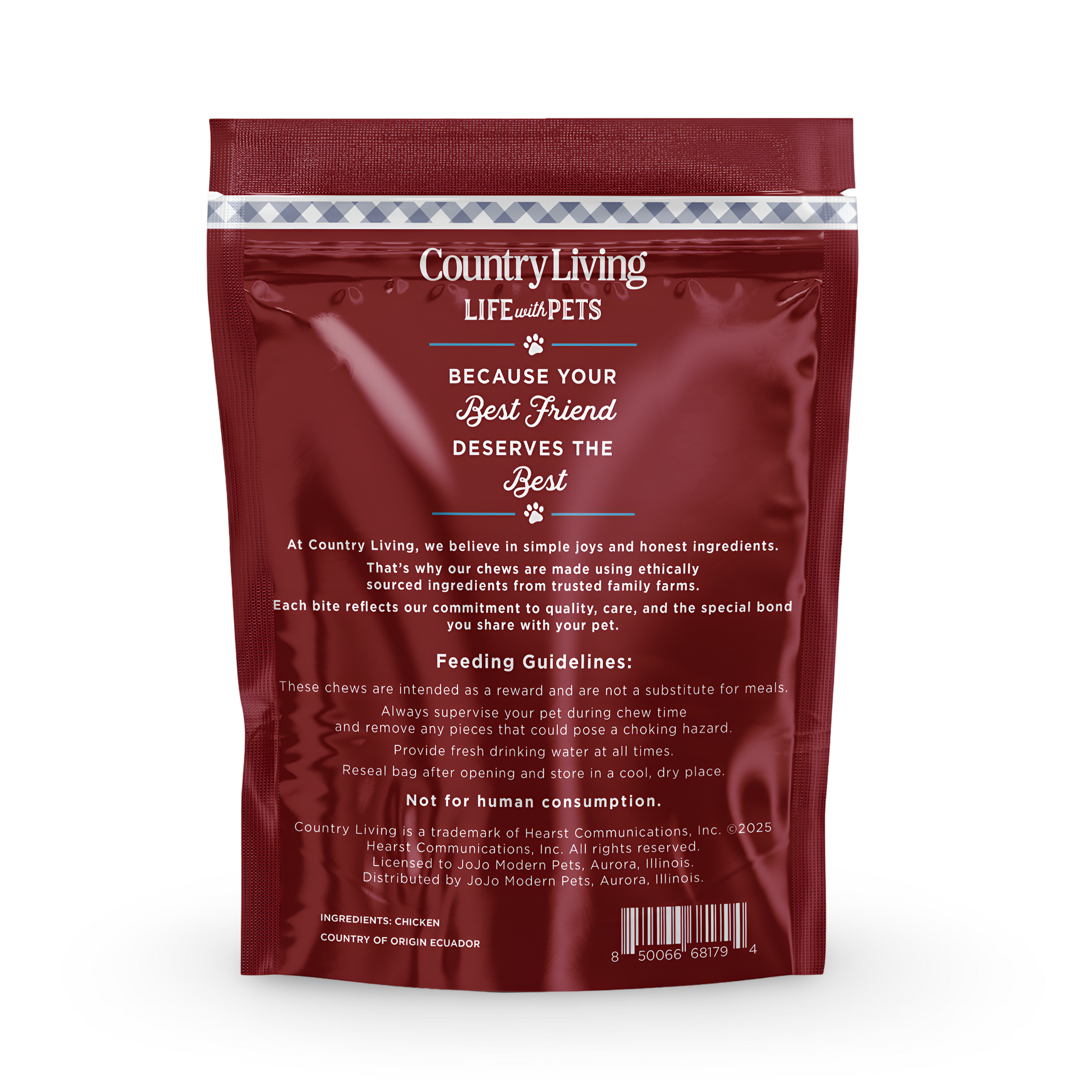 - Convenient 15-Count Bag — Each 4”-5” treat is perfectly sized for satisfying chewing. Packaged in a resealable Country Living 15-count bag to lock in freshness.