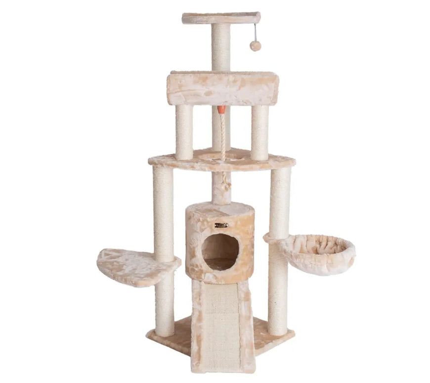 The Armarkat model A5806 Classic cat tree is Cat Daddy Approved by noted cat behaviorist Jackson Galaxy.This beige cat tree is packet with features, including a perch, condo, basket, ramp, and thick hanging sisal rope.