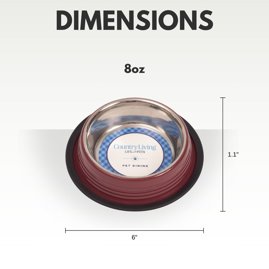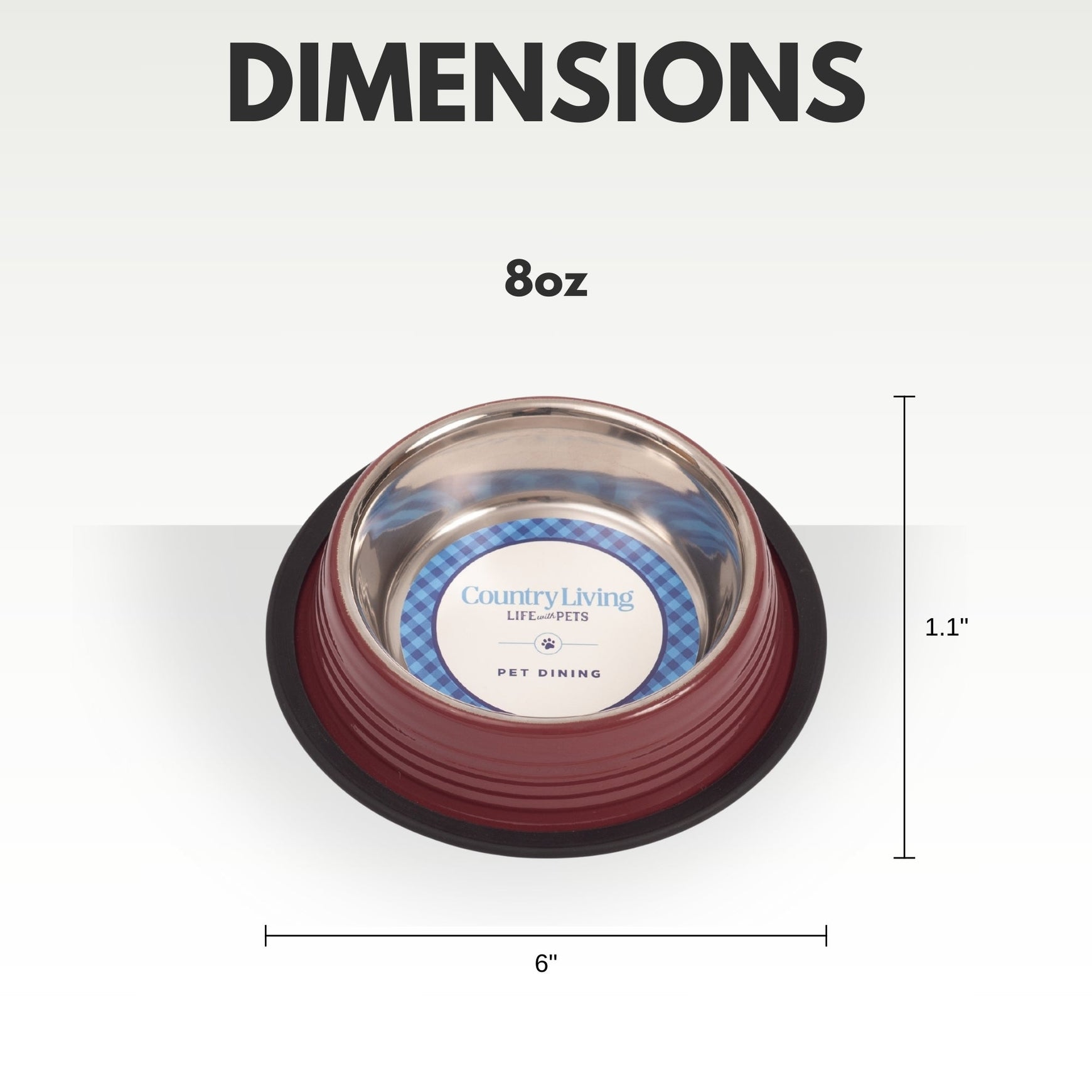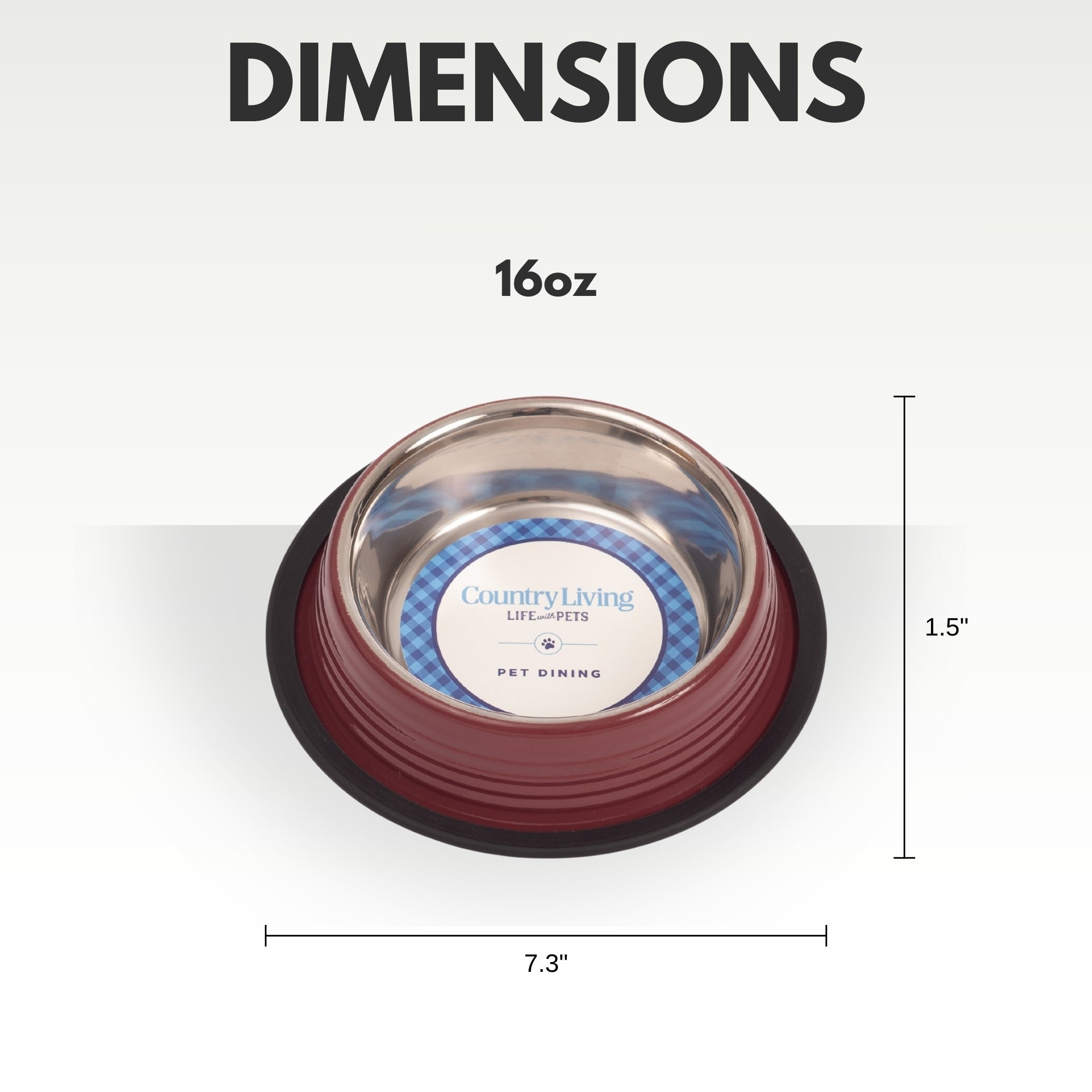 Country Living Set of 2 Ribbed Non-Slip Pet Bowls – Merlot Red