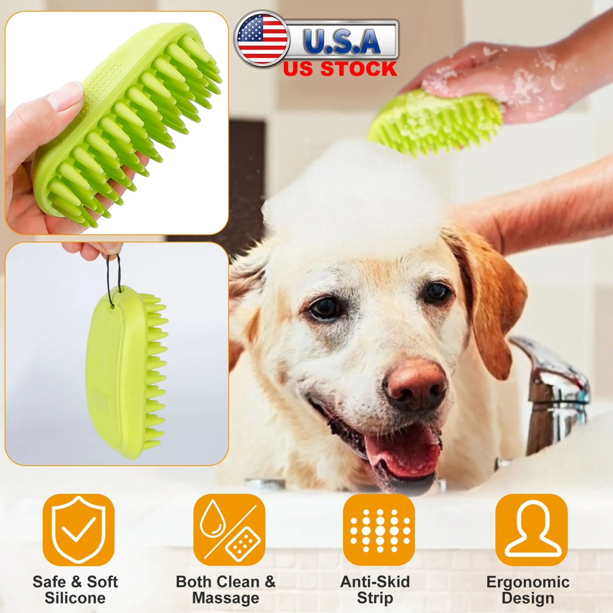 Our Dog Bath Brush is a gentle, yet effective pet bathing and massage tool, of which silicone bristle remove shed hairs while stimulating capillaries which enhance healthy skin and coats. Come with ergonomic design and non-slip grip, the pet bath brush will make you easier to bath your pets.