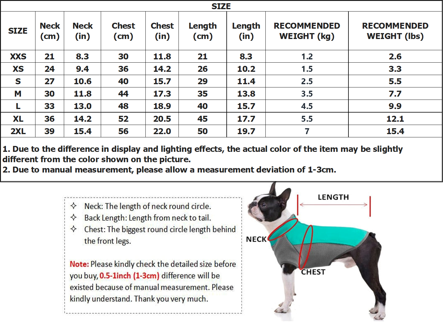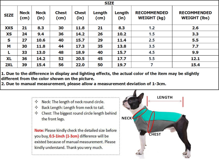 🐶 REMINDER - Please see the size chart as a reference and allow 2-4 CM differs due to manual measurement.